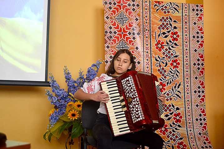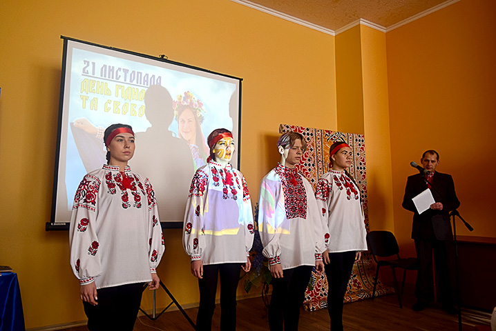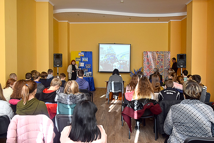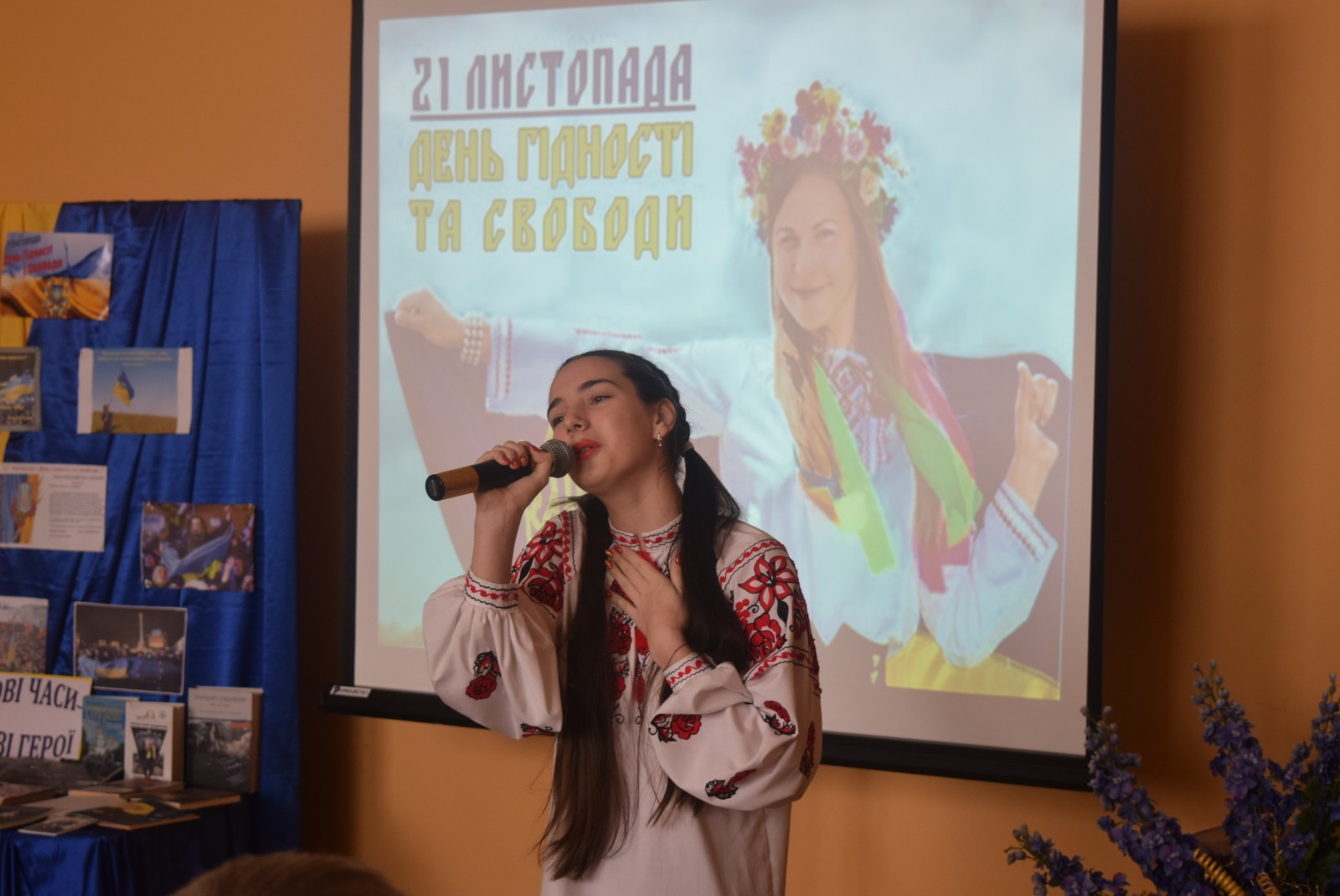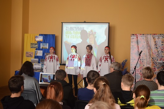 Для учасників заходу було показано історично-пізнавальні хронографи «Помаранчева революція» і «Революція Гідності» (бібліотечний відділ КЗ «СМПК») та прозвучала літературна композиція «Україна – Гідності дім» (вик. учасники театру юного глядача, кер. О. Бірюстюков), вокальна композиція «Моя Україна» (вик. Таїсія Шишка, солістка НАЕП «Луч», кер. О. Нежибовська), викладач ДМШ № 1 Любов Євімова виконала на акордеоні «Їдуть козаки», а вихованка Харебіна Марія - «Зелене жито зелене» і «Ой, Марічка» (викладач Ю. Володіна).