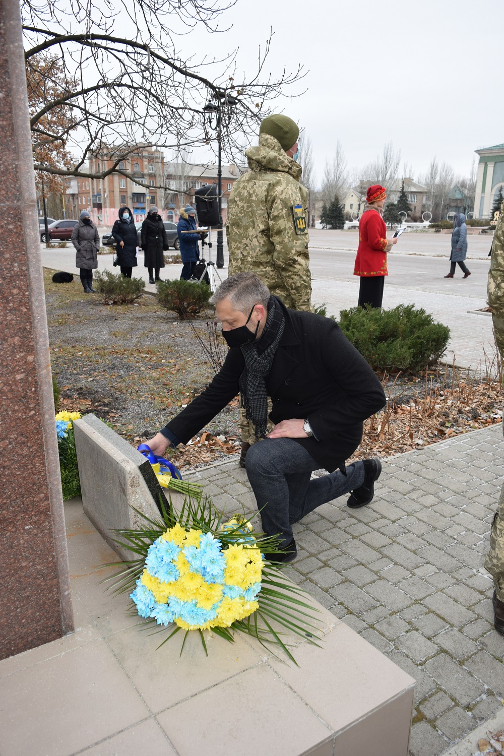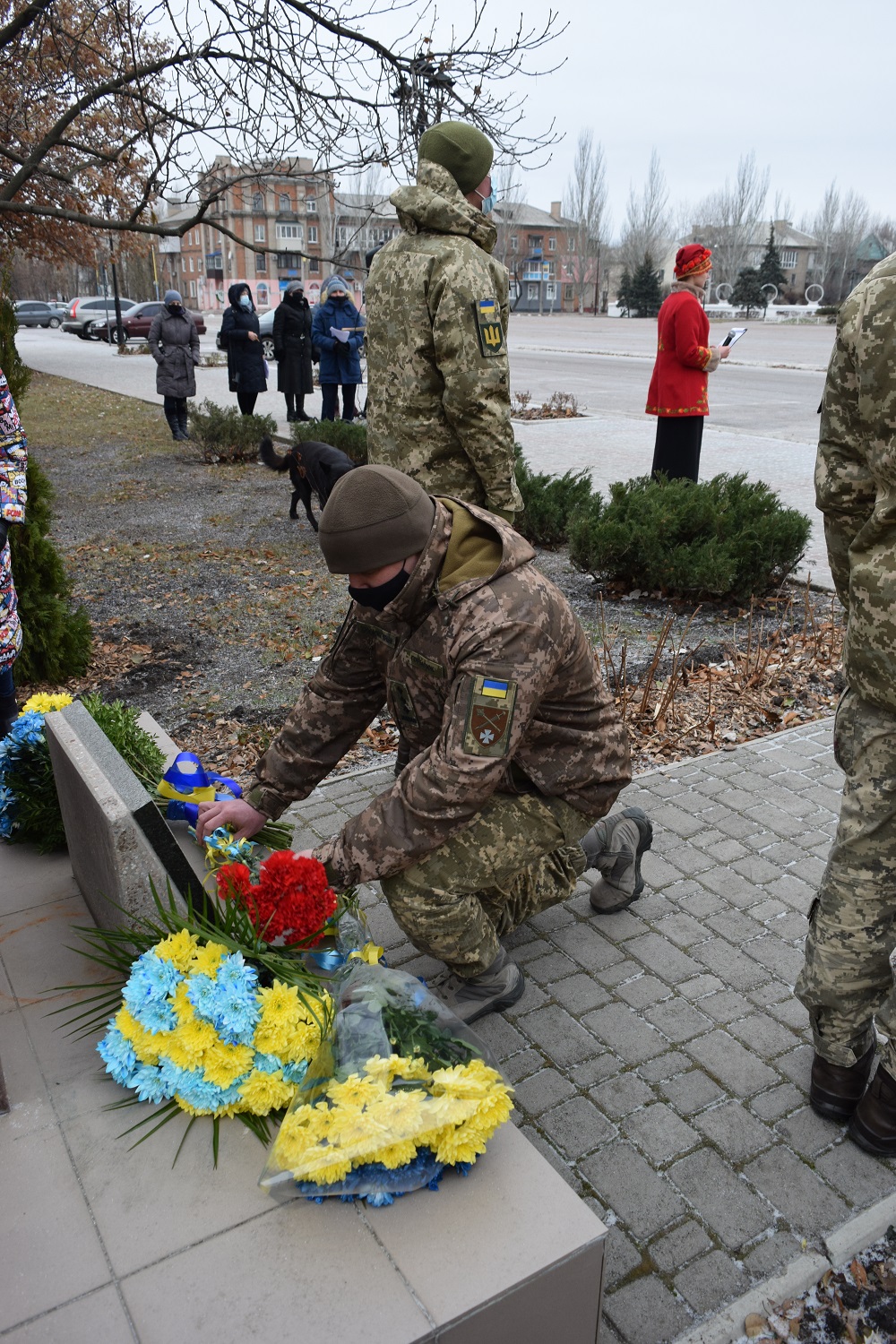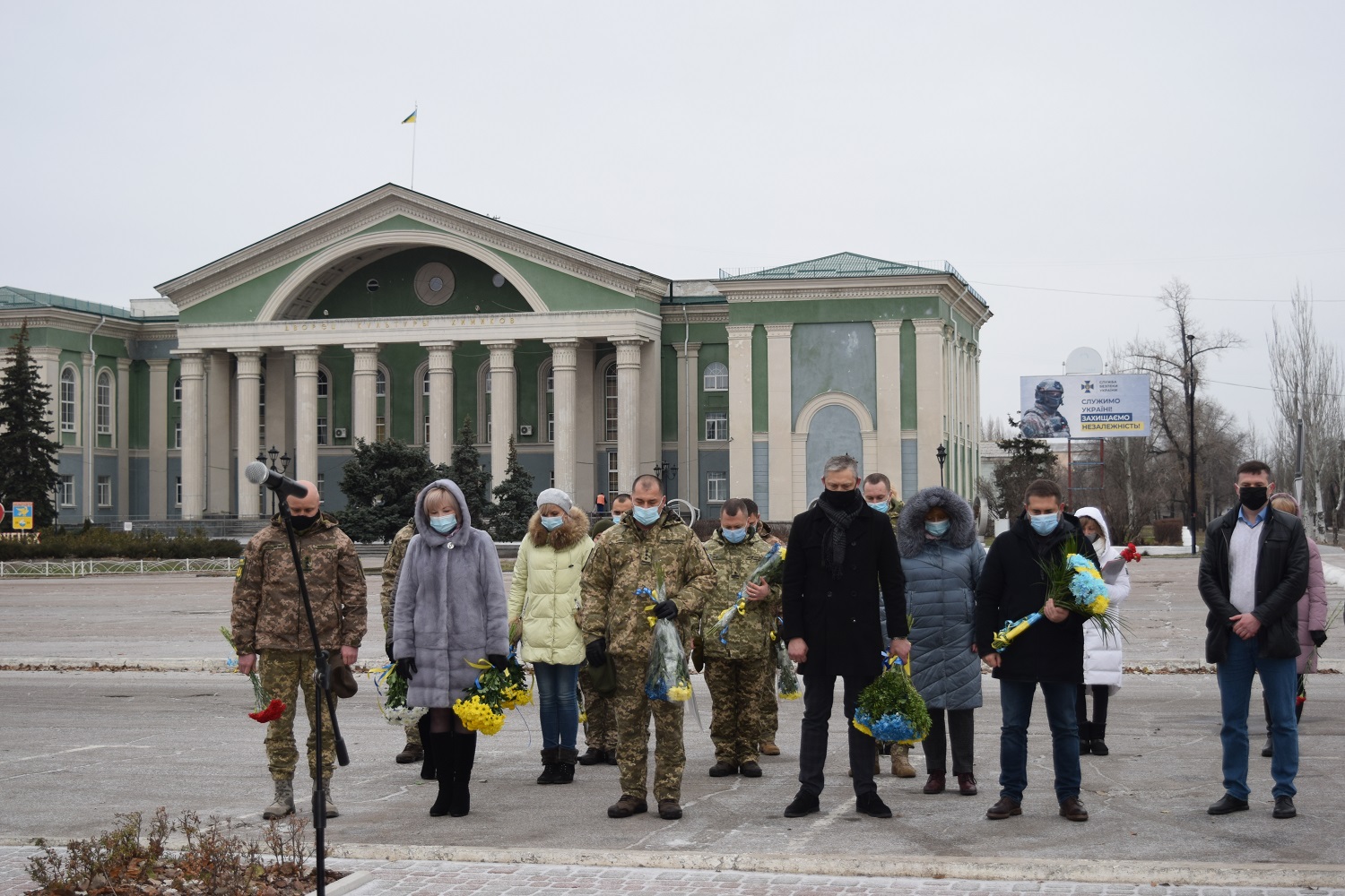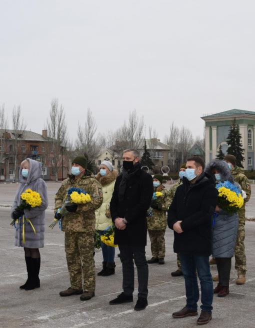 До учасників заходу звернувся голова Луганської обласної державної адміністрації – керівник обласної військово-цивільної адміністрації Сергій Гайдай: «Сьогодні дуже зимно і незручно. Саме в такі моменти розумієш, наскільки важко нашим воїнам от сам зараз там, в бліндажах, окопах, робити свою справу – боронити нашу країну, щоб ми тут могли зараз відзначити цей захід. Через 10-15 хвилин піти спокійно на роботу, працювати в мирному Сєвєродонецьку.