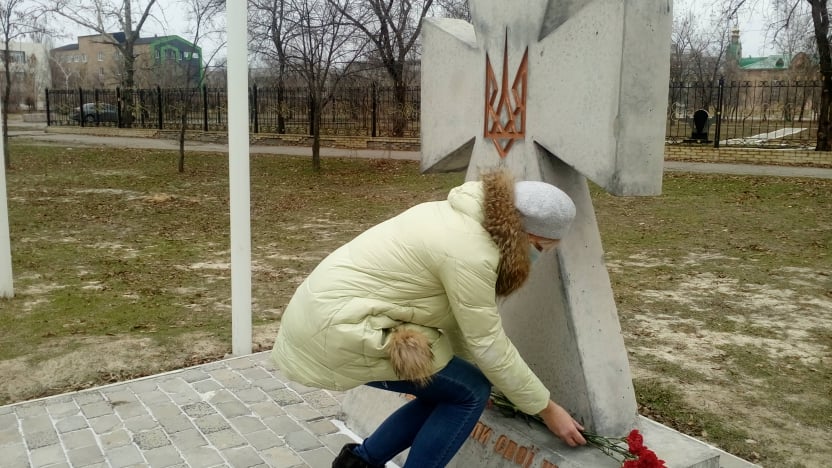 Присутні хвилиною мовчання вшанували пам'ять всіх героїв, які віддали своє життя за Україну, та поклали квіти до пам’ятника загиблому Герою.