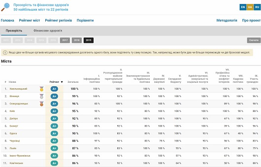 Серед лідерів прозорості міст - Хмельницький, Вінниця, Сєвєродонецьк.