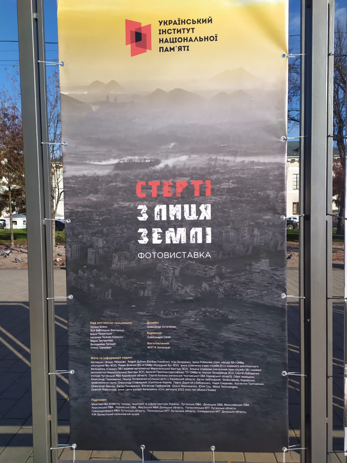 15 листопада у місті Києві відкрито банерну фотовиставку «Стерті з лиця землі», яка створена Українським інститутом національної пам’яті.