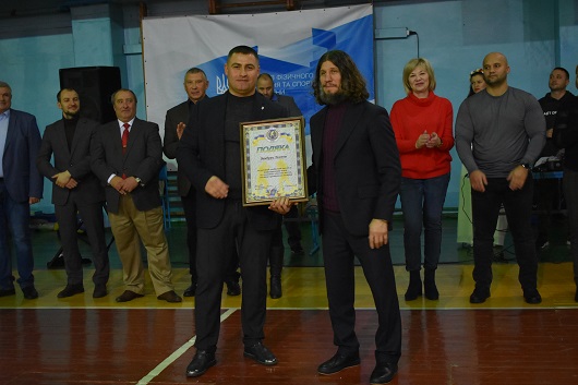 Президент федерації боксу Луганської області Олександр Матросов поздоровив учасників змагань та нагородив почесною відзнакою спортивну зірку міжнародного рівня Ельбруса Тедеєва.