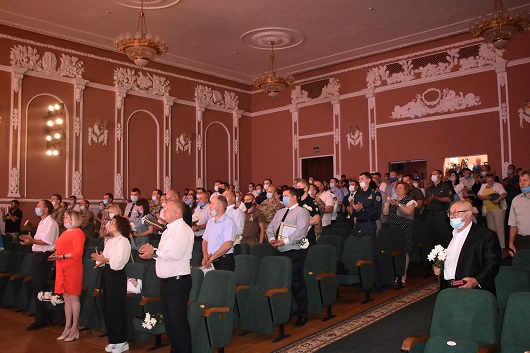Також усі присутні отримали привітання від Секретаря Ради національної безпеки і оборони України Олексія Данілова, які передав його радник Вадим Данієлян та нагородив голову облдержадміністрації Сергія Гайдая нагрудним знаком «Захиснику України».