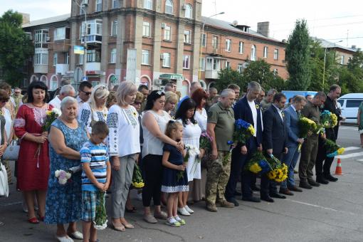 О пів на дев’яту ранку ]]>в СЗШ №10 було відкрито пам’ятну меморіальну дошку загиблому захиснику України, солдату 53-ї окремої механізованої бригади Левченку Сергію]]>, а з 9-ї години заходи продовжилися на площі Миру біля пам’ятника генерал-майору Національної гвардії України Радієвському Олександру Віталійовичу.
