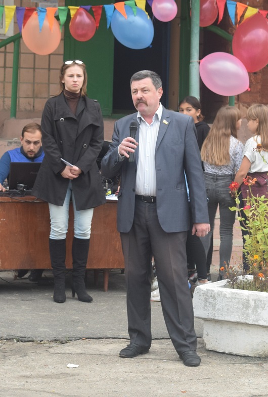 Депутат міської ради, представник депутатської групи «Сєвєродончани» Андрій Гавриленко традиційно завітав на захід та привітав присутніх зі святом: «Сьогодні початок нового навчального року в дитячо-юнацькому комплексі «Юність» ми святкуємо безпосередньо в клубі «Іскра». Від Сєвєродонецької міської ради та безпосередньо від депутатської групи «Сєвєродончани» бажаю вам миру, благополуччя, радості, достатку та щоб все було добре! Зі святом, друзі!»