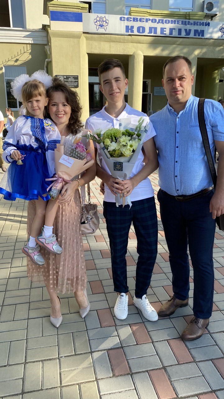 Юлія з родиною. 1 вересня 2022 року. 11-й клас сина Михайла