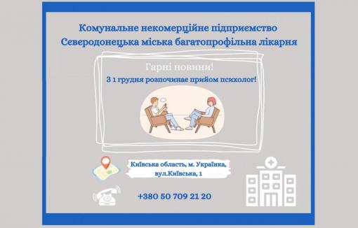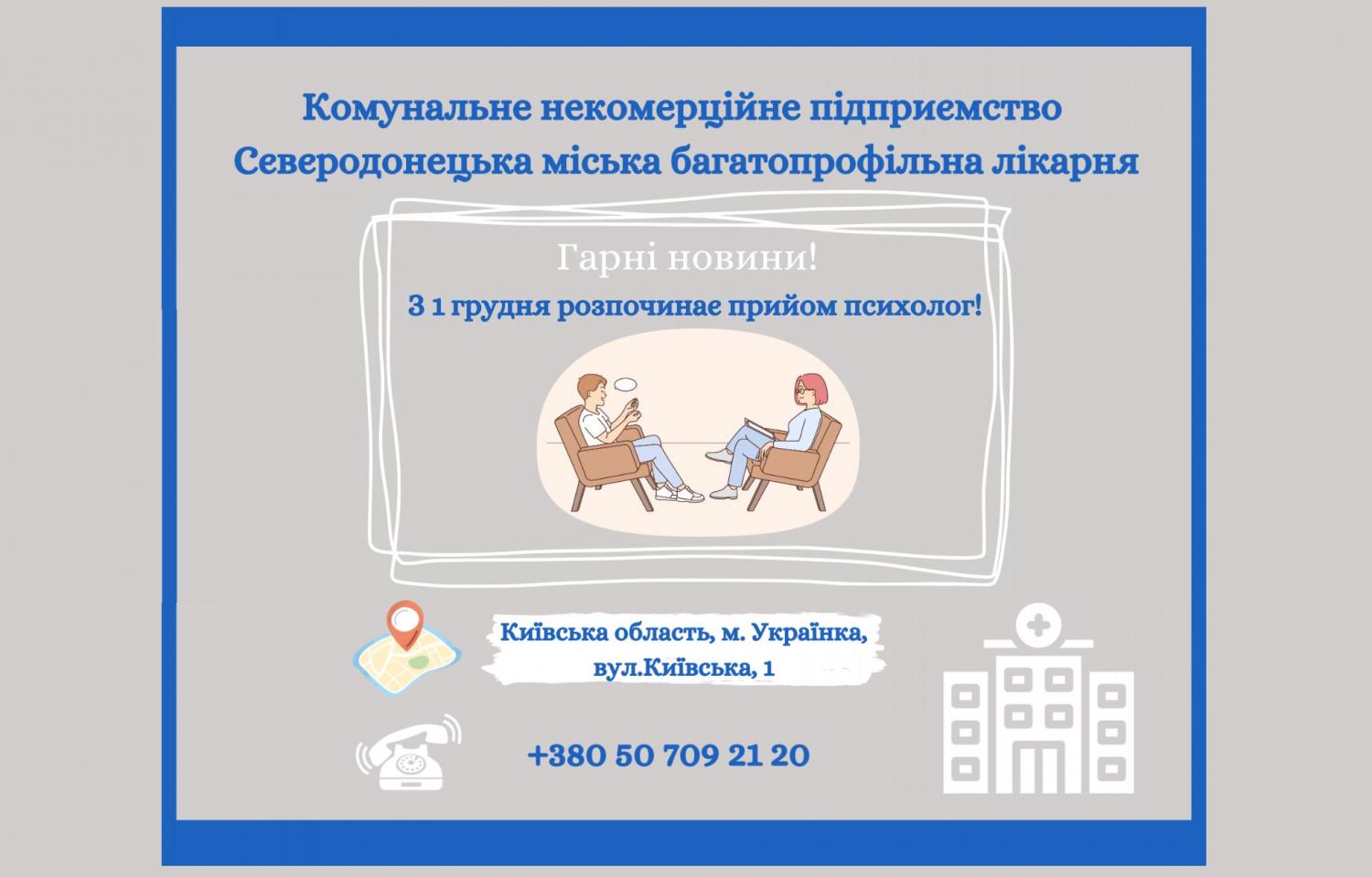 В Сєвєродонецькій міській багатопрофільній лікарні, яка наразі знаходиться у місті Українка, веде прийом лікар-дерматовенеролог, а з 1 грудня 2023 року розпочинає прийом психолог.