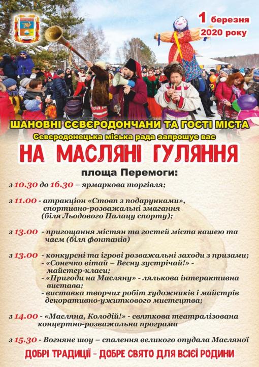 Сєвєродонецька міська рада запрошує 1 березня на МАСЛЯНІ ГУЛЯННЯ
