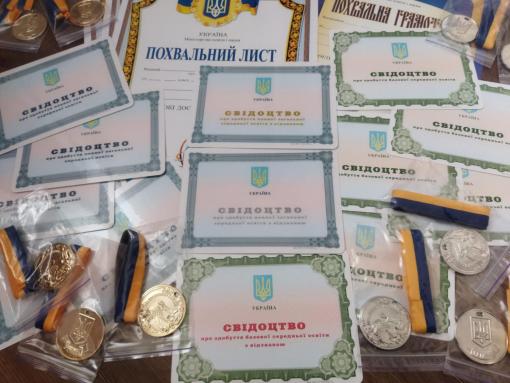 - 349 свідоцтв про здобуття повної загальної середньої освіти, з них 11 – для осіб, нагороджених срібною медаллю «За досягнення у навчанні» та 25 – для осіб, нагороджених золотою медаллю «За високі досягнення у навчанні».
