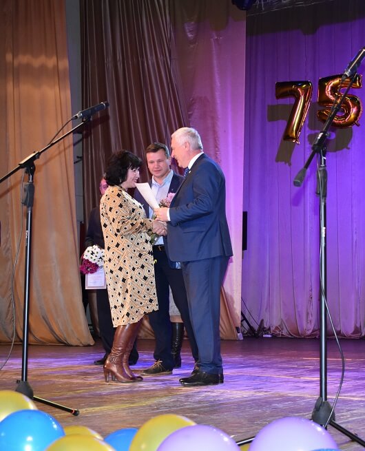 Заступник голови облдержадміністрації Катерина Безгинська передала найщиріші вітання від голови Луганської обласної державної адміністрації – керівника обласної військово-цивільної адміністрації Сергія Гайдая: «75 років для навчального закладу - це поважна та вагома дата. Вам є чим пишатися. У вас мудрий керівник, кваліфіковані педагогічні працівники, гарні вихованці. Ваші педагогічні працівники дають не тільки теоретичні знання своїм вихованцям, а й відмінні практичні навички, які дозволяють випускникам працювати в різних галузях економіки та суспільного життя нашої держави. Я впевнена, що попереду вас очікують нові горизонти, нові звершення. До кінця цього року на базі вашого навчального закладу планується відкриття навчально-практичного центру з професії слюсарного спрямування. Для розвитку якого будуть залучені значні кошти державного та обласного бюджетів. Бажаю вам здоров’я, натхнення, нових звершень. А головне – гарних вам вихованців, які прославлятимуть не тільки Луганщину а й Україну. Зі святом!», - привітала Катерина Миколаївна та нагородила відзнаками Луганської обласної державної адміністрації.