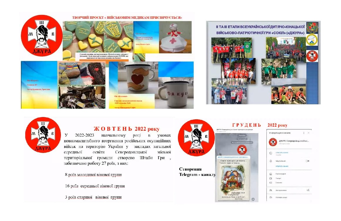 Присутніх ознайомили з досвідом проведення І (міського) етапу Всеукраїнської дитячо-юнацької військово-патріотичної гри «Сокіл» («Джура») на прикладі роботи Сєвєродонецького міського Центру національно-патріотичного виховання, туризму та краєзнавства учнівської молоді.