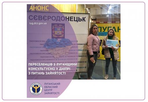 Досягнуто домовленість щодо роботи працівників Луганської обласної служби зайнятості у м. Дніпро. Переселенців консультуватимуть з питань зайнятості на постійній основі у Сєвєродонецькому гуманітарному штабі та Центрі надання допомоги мешканцям Лисичанської міської територіальної громади.