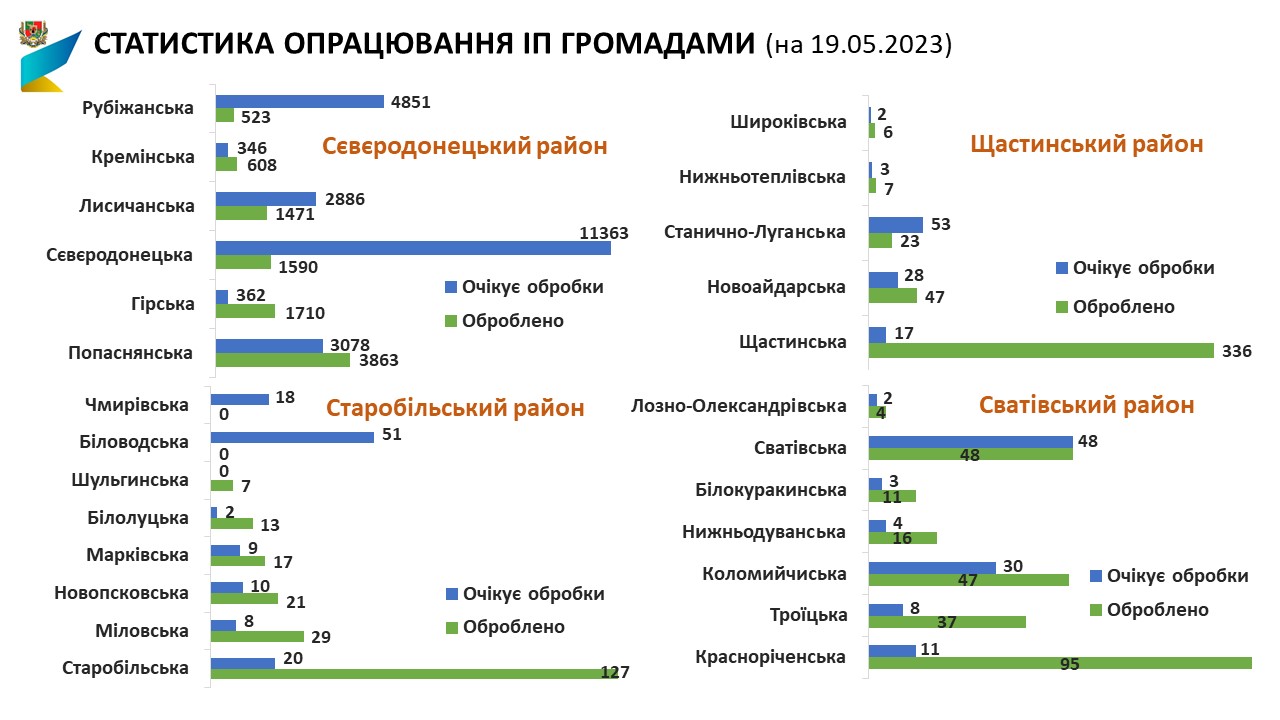 Військовими/військово-цивільними адміністраціями територіальних громад Луганської області опрацьовано 10668 інформаційних повідомлень (ІП).