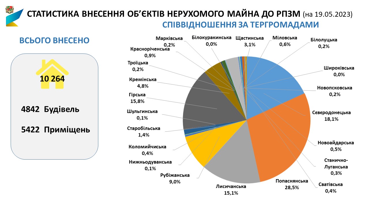 Загалом до РПЗМ внесені 10264 об’єкти нерухомого майна, у тому числі 4842 будівлі, 5422 приміщення.