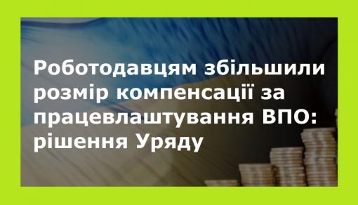 Сума компенсації роботодавцям за працевлаштування ВПО зросте до 6700 грн
