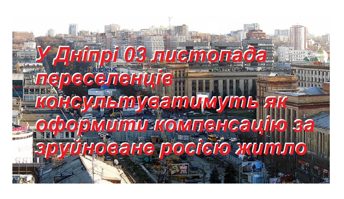 У Дніпрі 03 листопада переселенців консультуватимуть як оформити компенсацію за зруйноване росією житло