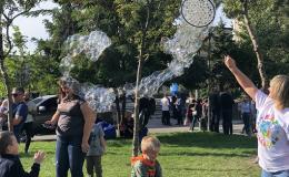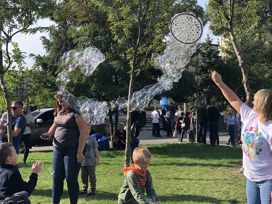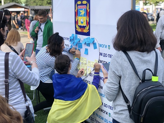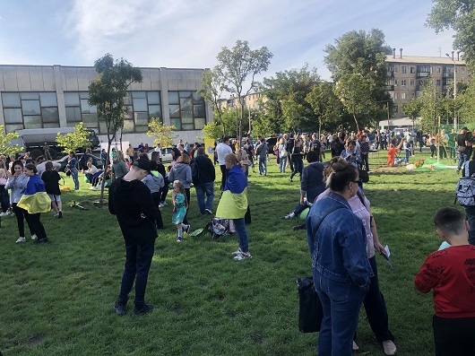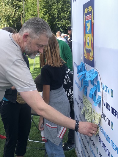 Зокрема, дітлахи мали змогу на величезному полотні написати найзаповітніші мрії, діяли майстер-класи з плетіння маскувальної сітки для військових, працювали фуд-корти та пункт видачі гуманітарної допомоги від ГО «Проліска».