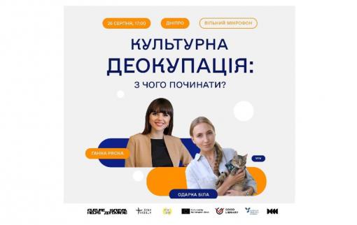 У форматі «вільного мікрофона» із запрошеними спікерами та іншими гостями відбудеться обговорення про зміст та інструменти культурної деокупації, а також роль спільнот у відбудові.