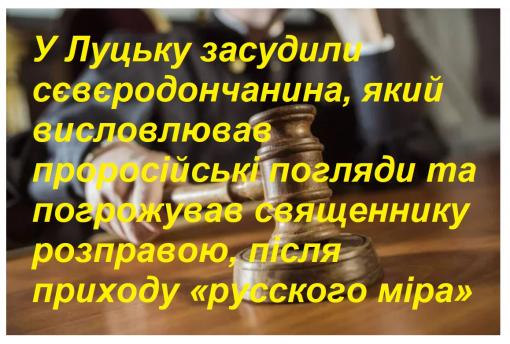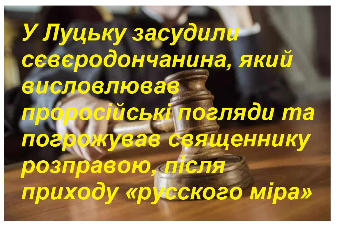 У Луцьку засудили уродженця міста Сєвєродонецька Луганської області, який не просто відкрито висловлював свої проросійські погляди, а й погрожував місцевому священнику розправою, після приходу на Волинь «русского міра».