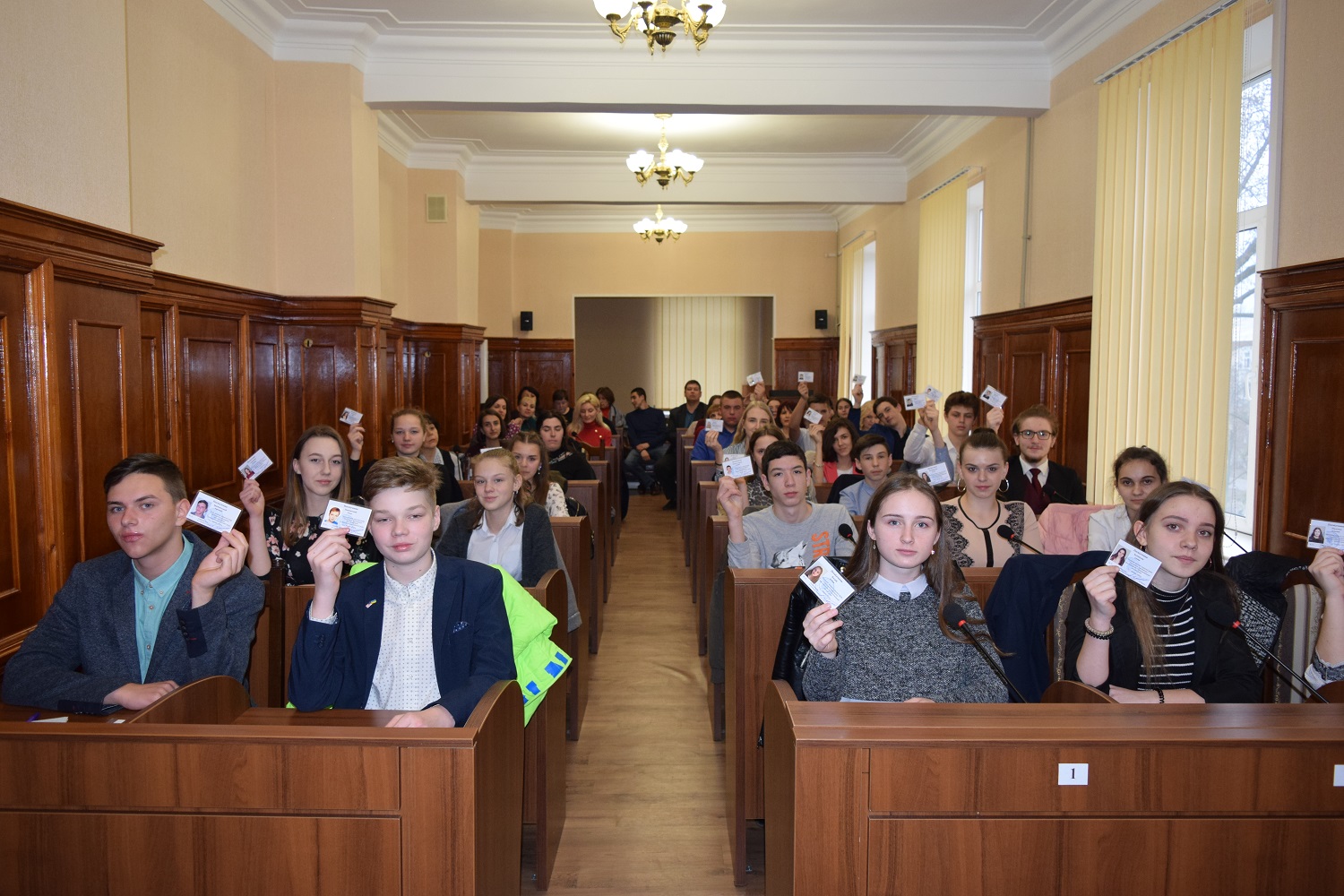 На першому засіданні члени Шкільного парламенту урочисто отримали іменні посвідчення, які дозволяють їх власникам безперешкодно відвідувати сесії, виконкоми та інші заходи міські заходи, офіційно вносити свої пропозиції та побажання.