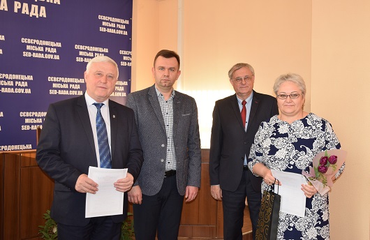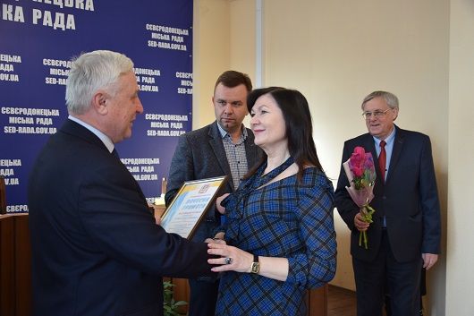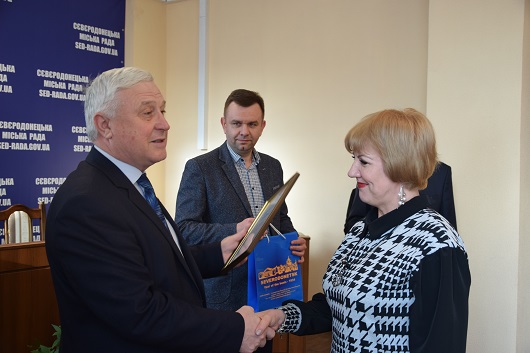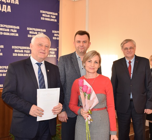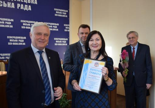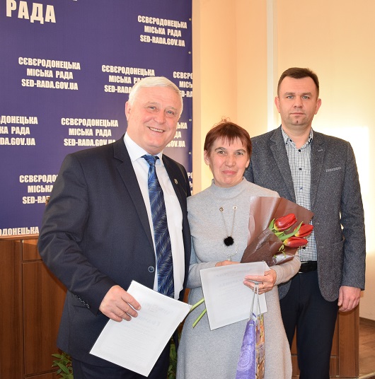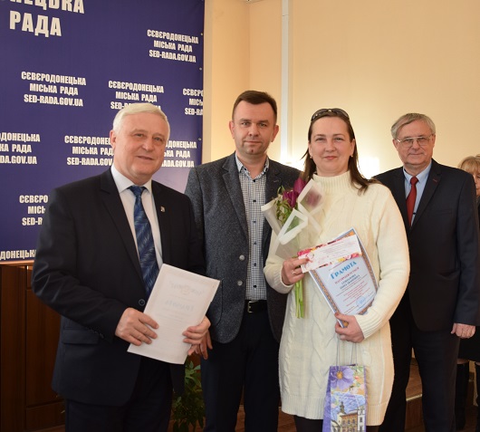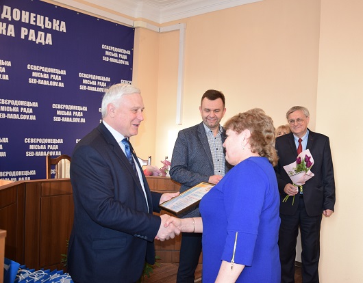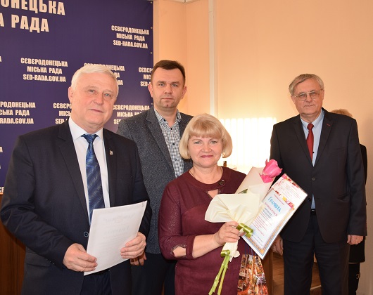 Грамотами виконавчого комітетута цінними подарунками - годинниками з символікою міста Сєвєродонецька:
