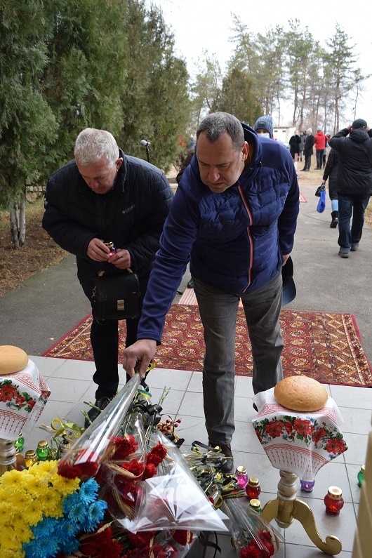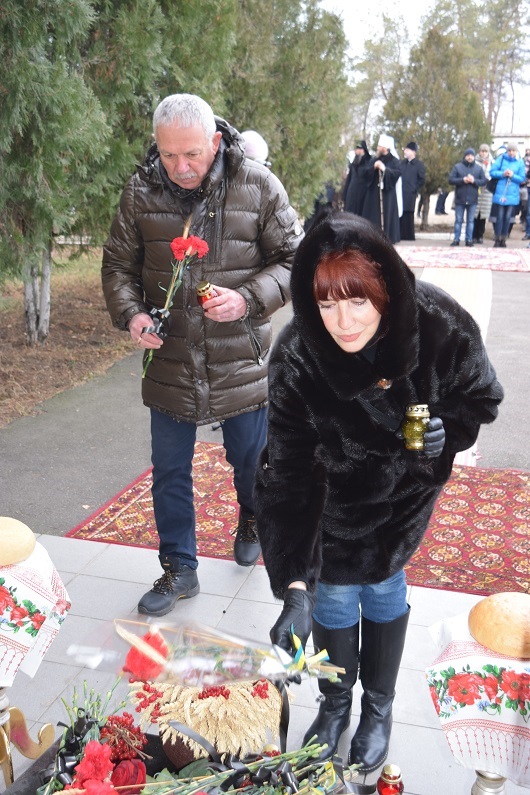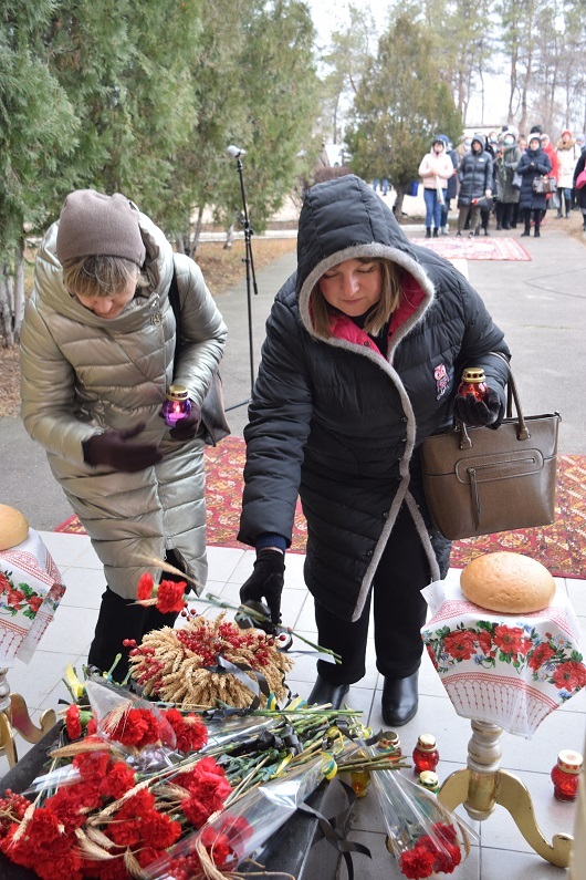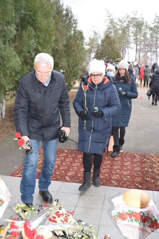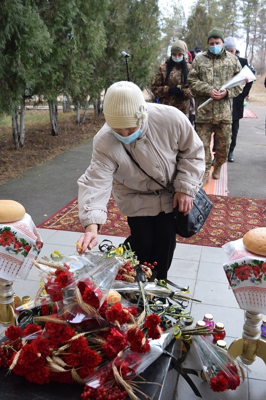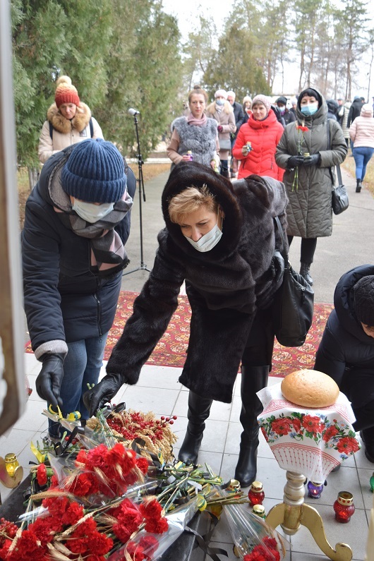 На завершення заходу присутні на знак співчуття, скорботи та незгасаючої пам’яті про ті страшні події поклали квіти, колосся пшениці та лампадки до пам’ятника Жертвам Голодомору 1932-1933 років.