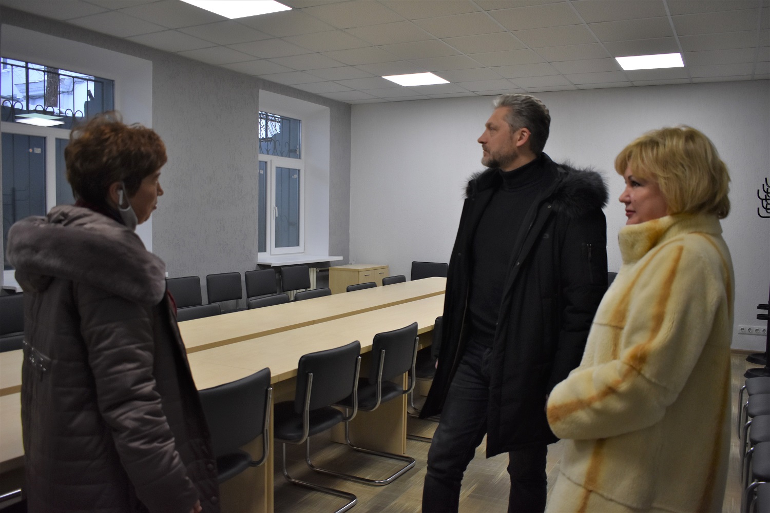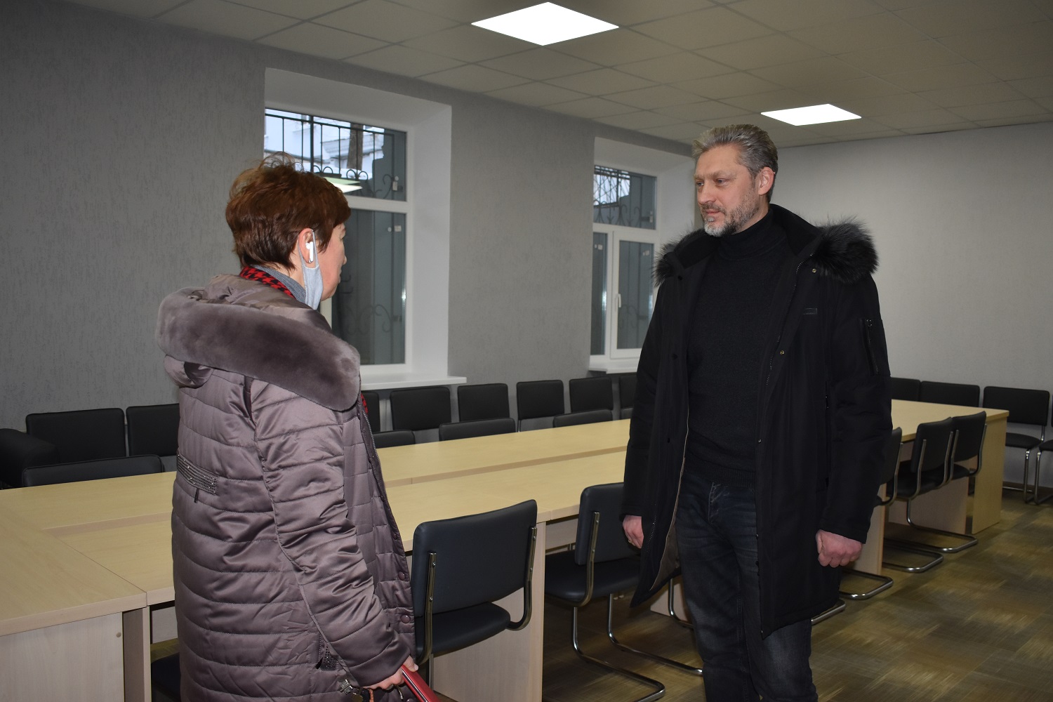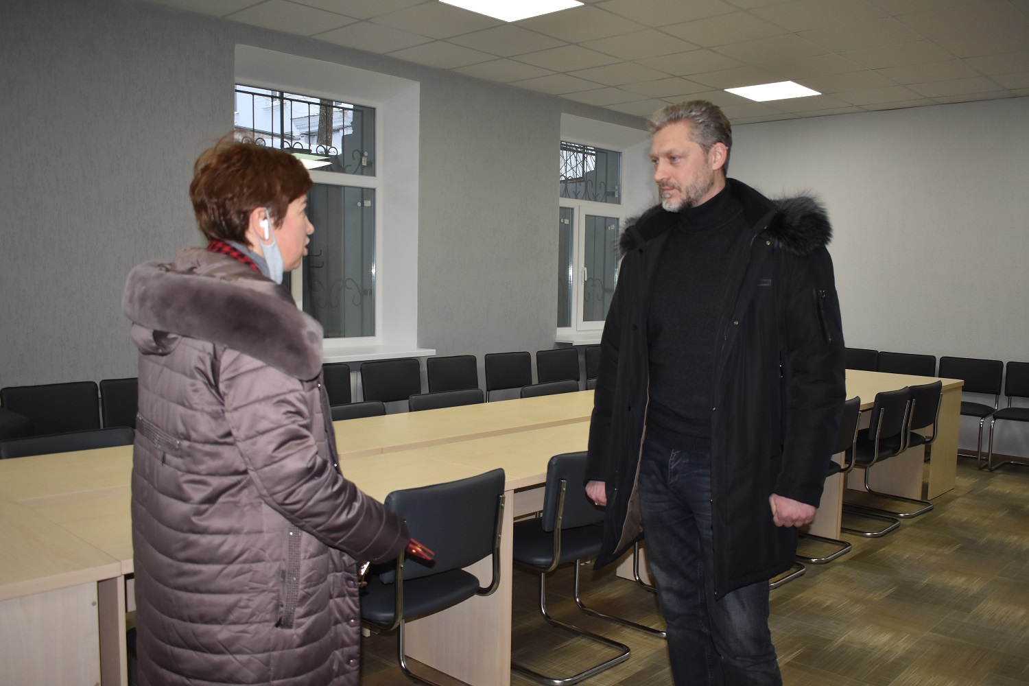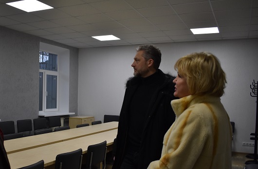 24 січня керівника Сєвєродонецької міської військово-цивільної адміністрації Олександра Стрюка та його заступницю Ельвіну Марініч начальник управління адміністративних послуг Олена Єлісєєва ознайомила з результатами проведеного ремонту приміщення для проведення нарад управління адміністративних послуг та тренінгів з підвищення кваліфікації адміністраторів, а також для зберігання архівних документів.