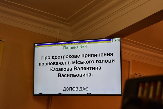 В рішенні щодо припинення повноважень міського голови Валентина Казакова зазначено, що вищезазначеною посадовою особою систематично порушувались Закони України, що призвело до обмеження прав і свобод громадян і депутатів міської ради, а саме: