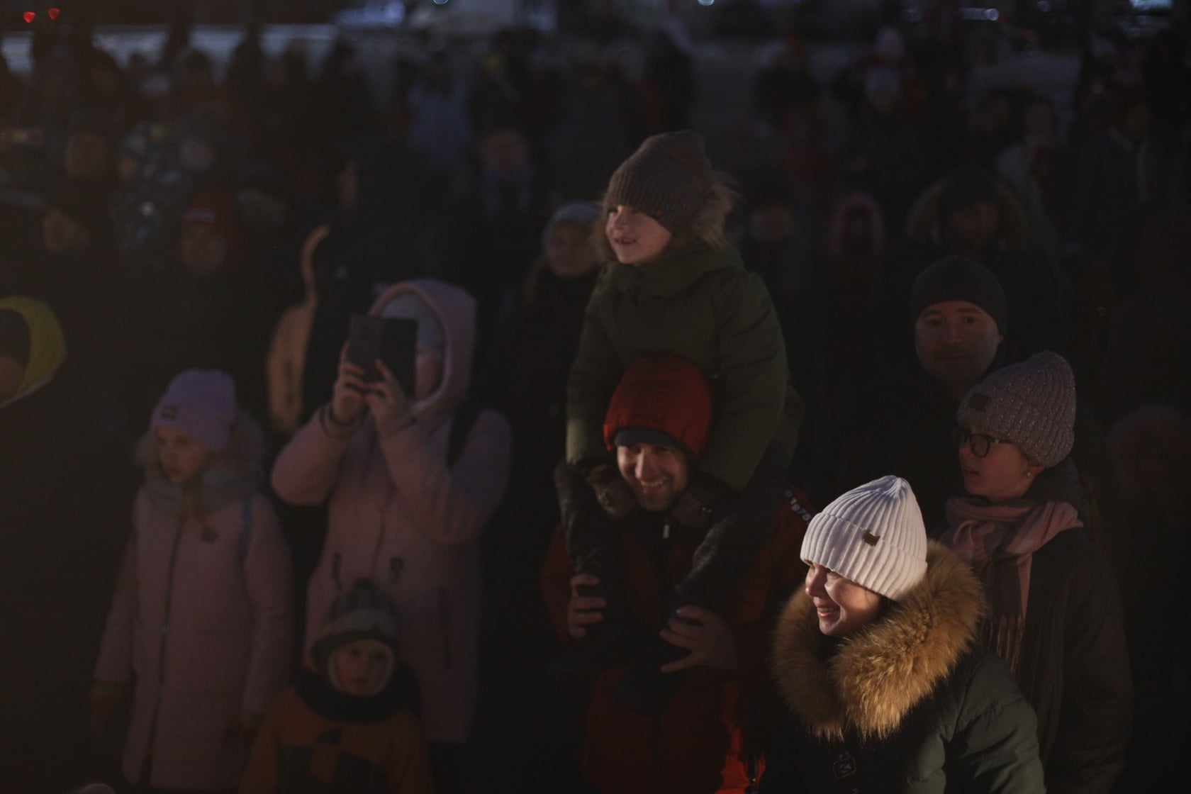 До найочікуванішої події – запалення новорічної ялинки – долучилися не лише найменші сєвєродончани, а й гості. Олександр Стрюк та пластуни допомогли малечі засвітити святкові яскраві вогники під радісні вигуки дітвори та навіть дорослих.