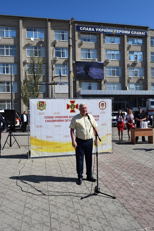 Також до присутніх звернувся в.о. міського голови Сєвєродонецька Вячеслав Ткачук: «Дякую вам за професійне виконання свого обов’язку у випадках надзвичайних ситуацій. Дозвольте від імені Сєвєродонецької міської ради та її депутатського корпусу привітати вас з нагоди вашого професійного свята. Я гордий, що можу подякувати, дивлячись вам в очі. Бажаю вам та вашим сім’ям миру, спокою та добробуту!»