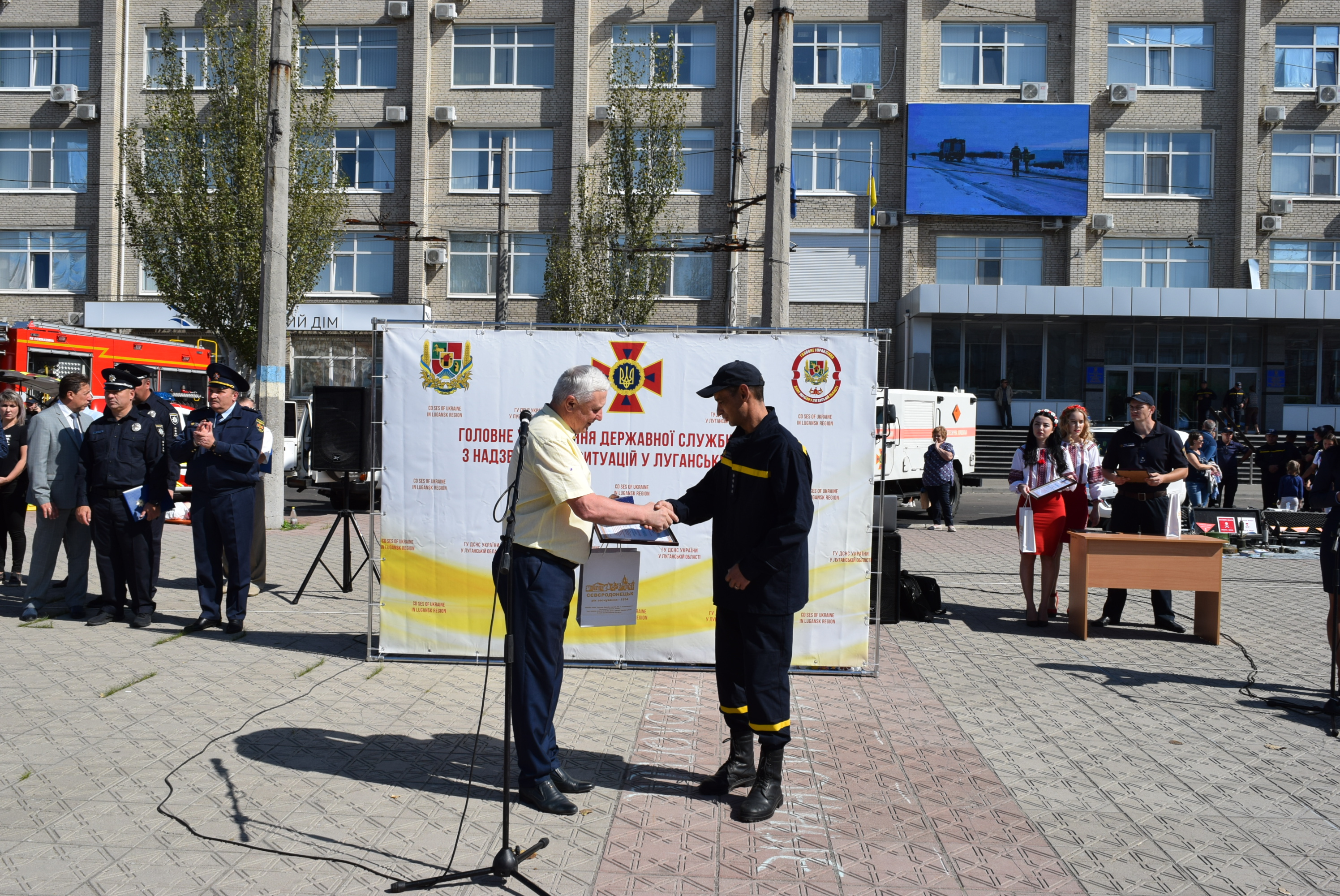 15 вересня, у Сєвєродонецьку на центральній площі Перемоги, відбулися обласні заходи з нагоди Дня рятівника. На них зібралися працівники аварійно-рятувальних служб, пожежної охорони, інших спеціальних формувань, а також громадяни, які внесли свій внесок у справу ліквідації наслідків надзвичайних ситуацій техногенного та природного характеру, захисту життя і здоров’я людей зі всієї Луганської області. Привітати їх завітали керівництво області та міста, рідні та близькі, пересічні мешканці Сєвєродонецька та надзвичайна велика кількість малечі, яка із задоволенням знайомилися з професією РЯТІВНИКА.
