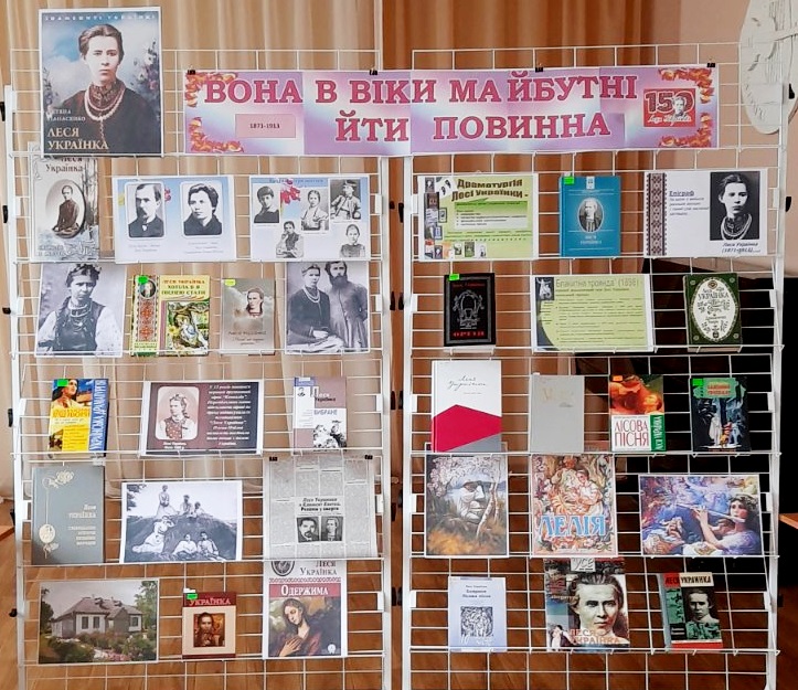 Підготувала бібліотека і ]]>виставку-вітання «Душею щира Українка»]]>, ]]>виставку-вшанування «Я маю в серце те, що не вмирає»]]> та ]]>онлайн-вікторину «Ти себе Українкою звала»]]>
