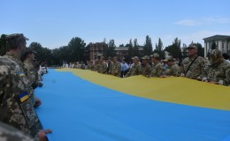 Урочисто, під звучання Гімну України, відбулась церемонія підняття Державного Прапора України. Вітряна погода переплітала блакить і золото прапора. Стяг одразу вільно замайорів у блакитному небі наче символ нескореності українського народу.