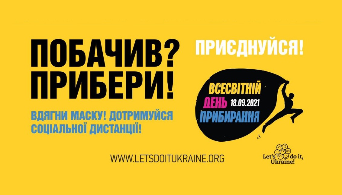 18 вересня 2021 року Україна разом з мільйонами активістів 180 країн світу вийде на Всесвітній день прибирання «World Cleanup Day». Українці із міст та містечок, сіл та селищ об’єднаються заради досягнення спільної мети – порятунку планети від сміття.