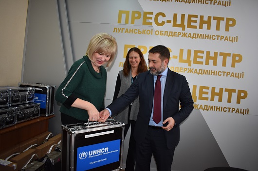28 січня такий комплект портативної техніки «Мобільний кейс» було урочисто вручено заступником представника Верховного Комісара ООН у справах біженців в Україні Ноєль Калхун і головою Луганської ОДА Сергієм Гайдаєм.