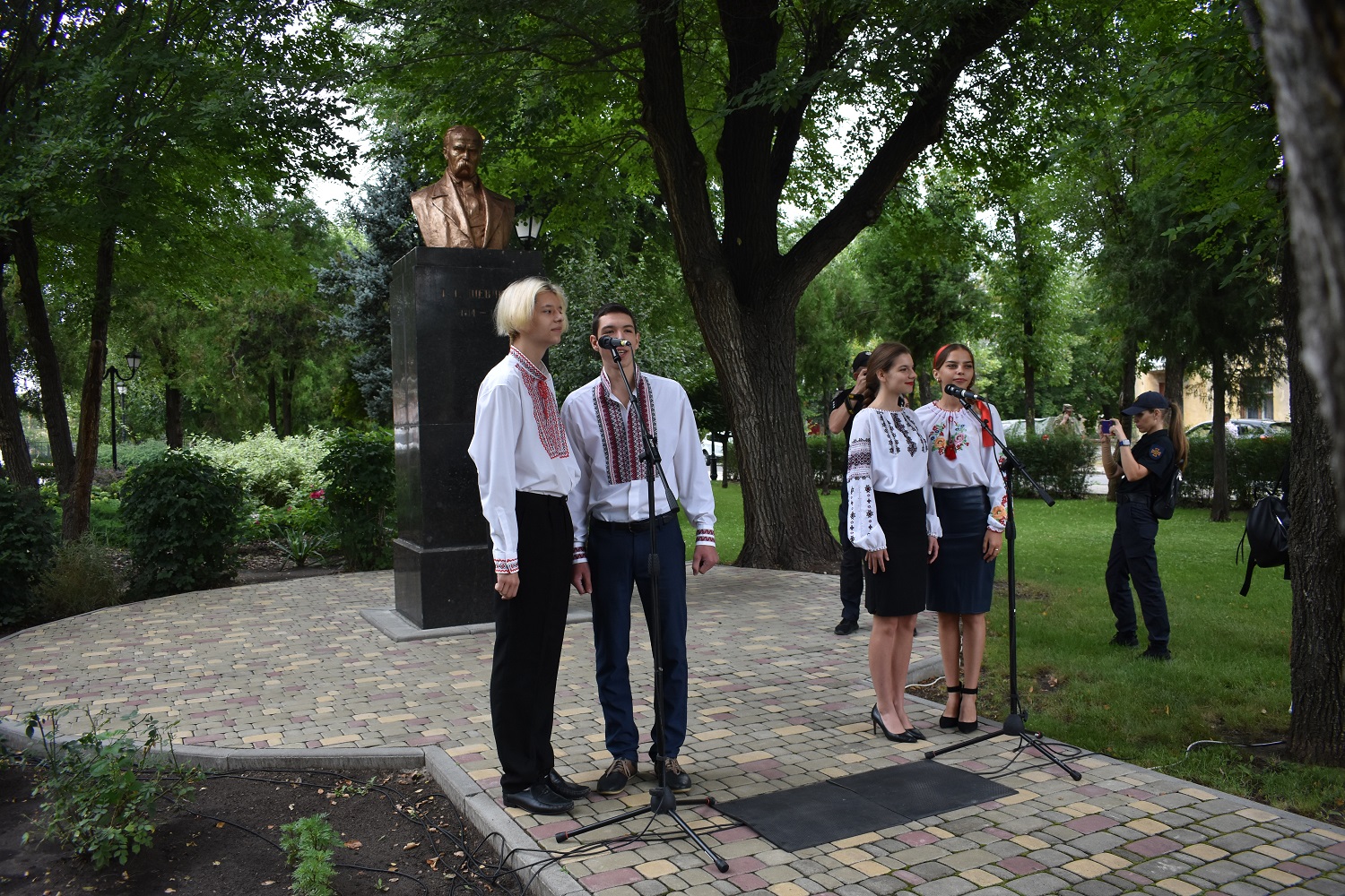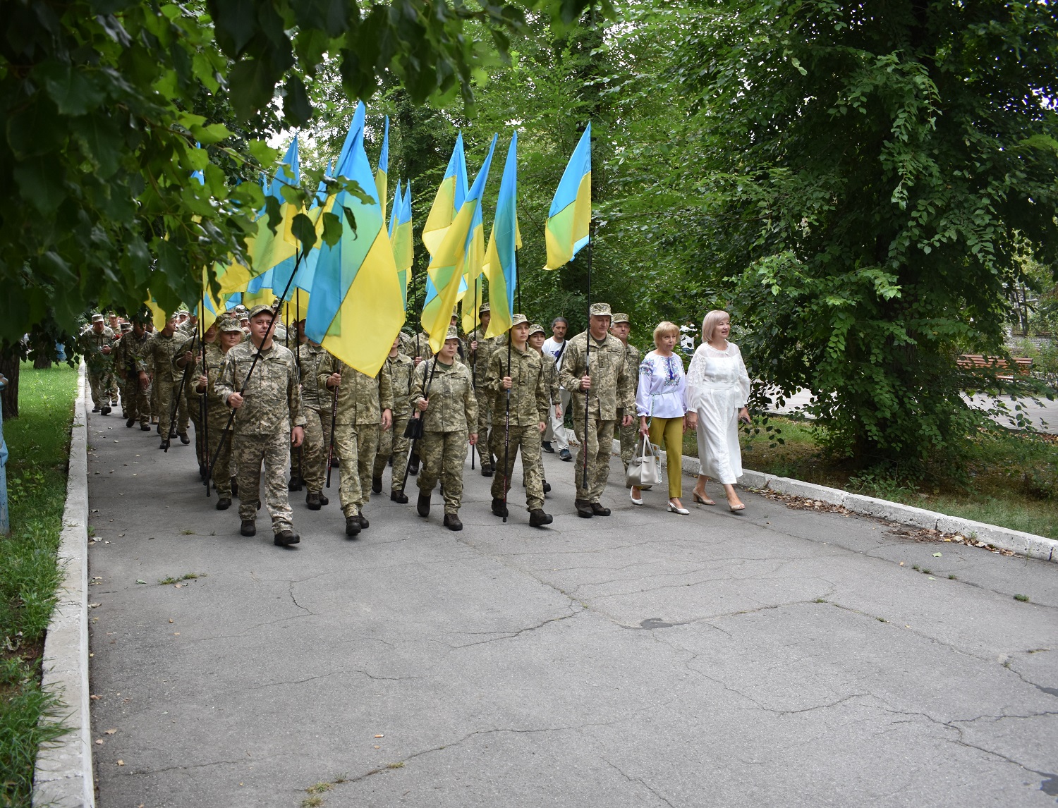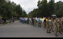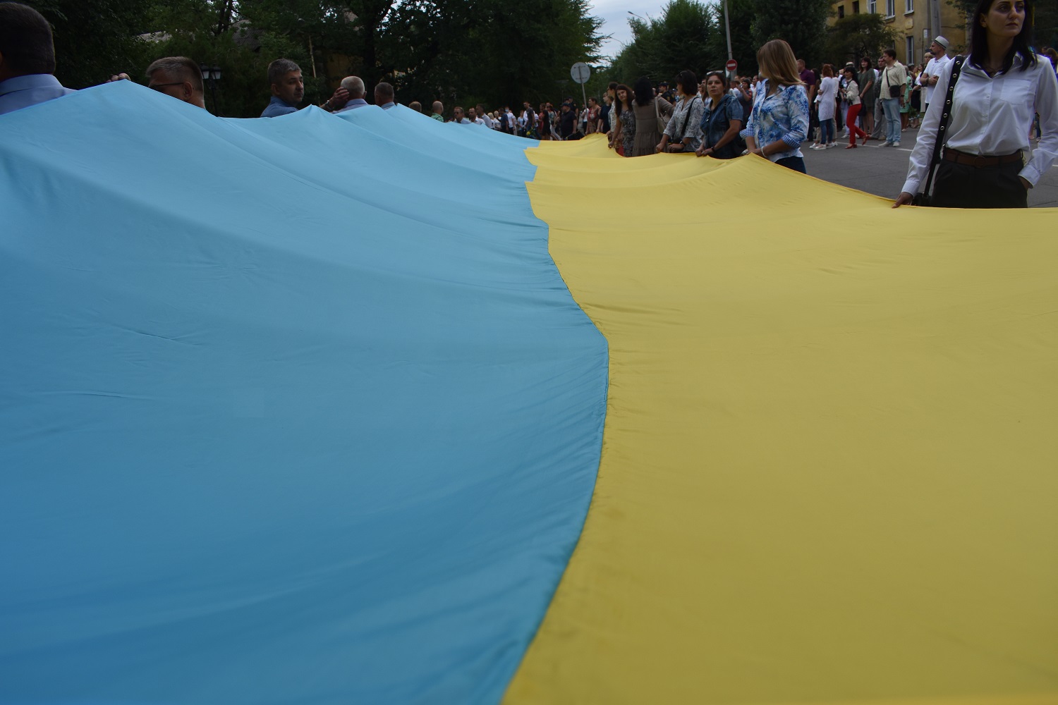Продовжився захід урочистою ходою з двадцятиметровим Прапором України до пам’ятників легендарним українцям Тарасу Шевченку та Івану Франку.