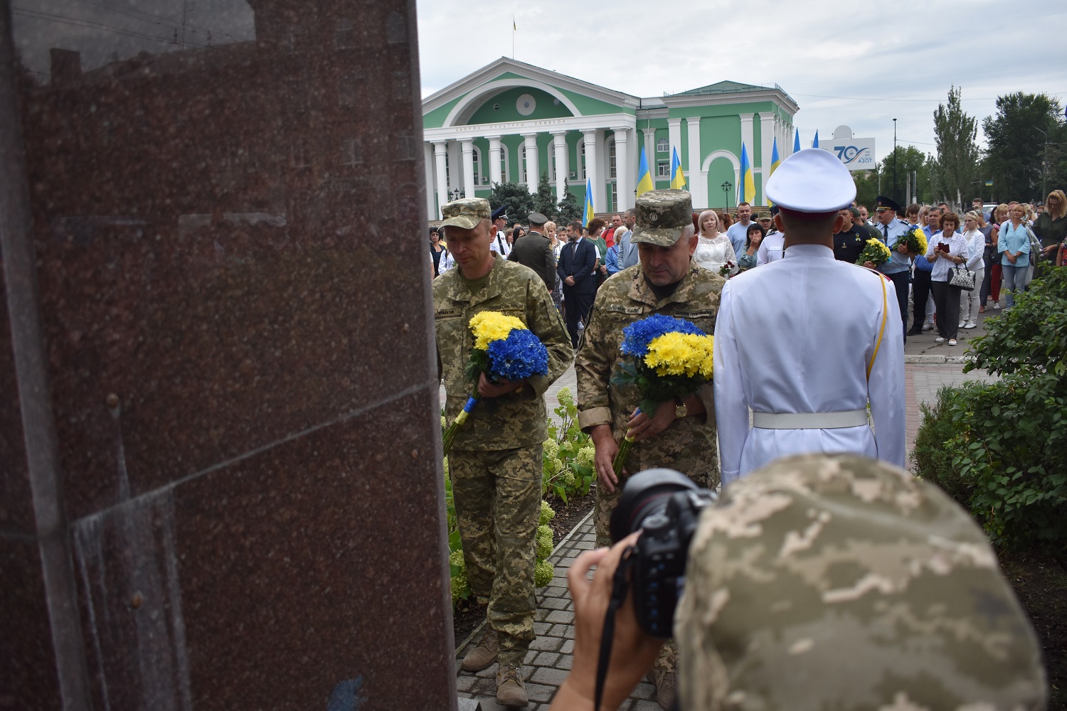 У Сєвєродонецьку День незалежності України розпочався урочистим заходом покладання квітів до пам’ятника генерал-майору Національної гвардії України Олександру Радієвському.