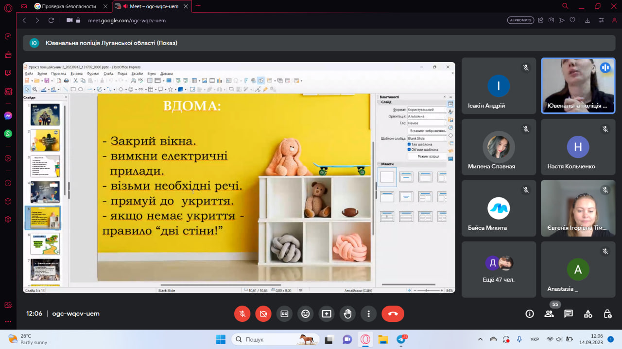 Як зазначабть в освітньому закладі, війна змушує змінюватись: щохвилини може бути повітряна тривога, яку ми не можемо контролювати. Саме тому важливо розвинути нові навички, сформувати стійкі компетенції поведінки дітей під час перебування на вулиці або вдома.