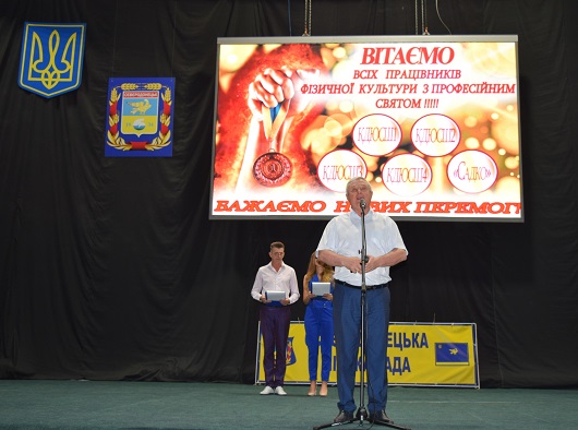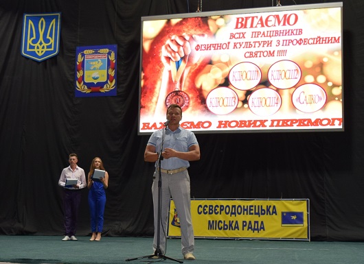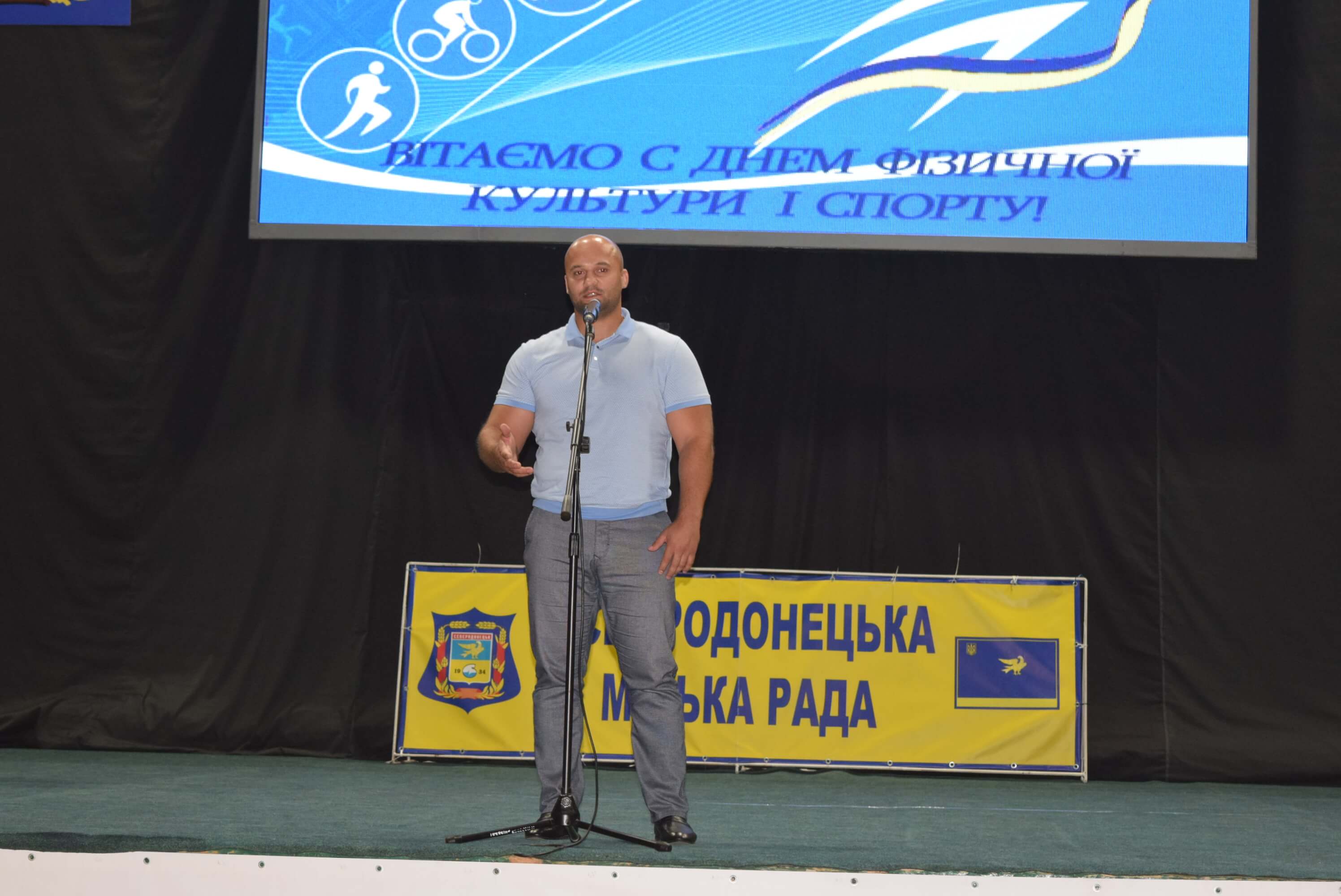 «Шановні присутні, друзі! Від імені Сєвєродонецької міської ради хочу привітати вас з професійним святом! Бажаю вам успіхів, здоров’я та удачі! Дякую батькам та тренерам за підтримку наших спортсменів! Дякую відділу молоді та спорту міськради на чолі з Віталієм Невеселим та заступнику міського голови Ірині Степаненко, яка опікується питаннями сім’ї, молоді та спорту і всіляко сприяє, щоб спорт у Сєвєродонецьку розвивався та щоб у вас було більше перемог і досягнень. Від імені депутатів міськради та взагалі від влади міста запевняю вас, що ми вас завжди підтримаємо, бо ви прославляєте Сєвєродонецьк не тільки в Україні, а й по всьому світу! Дякую вам!»