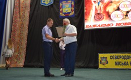 Після теплих слів Вячеслав Ткачук за вагомий внесок у розвиток фізичної культури та спорту з нагоди Дня фізичної культури та спорту вручив видатним спортсменам і тренерам-викладачам Грамоти Сєвєродонецької міської ради, якими нагороджені: