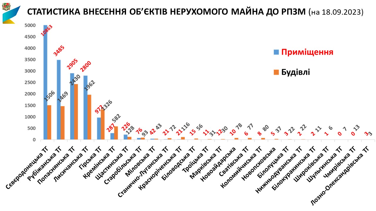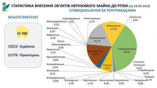 Всього до РПЗМ внесено 31988 об’єктів нерухомого майна (ОНМ), у тому числі 10212 будівлі, 21776 приміщень.