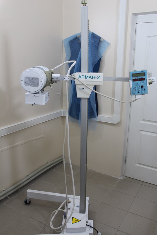 Также были приобретены сухожарочные стерилизаторы, пульсоксиметры, дефибриллятор, кислородные концентраторы и цифровой рентгенодиагностический аппарат. Последний оснащен цифровым полноформатным детектором, на котором возможно выполнение всех видов рентгенографии. Широкий динамический диапазон дает возможность увидеть не только туберкулез, а все изменения в легких. Появляется возможность увидеть изменения в медиастинуме и выявить центральный рак легкого на ранних этапах.