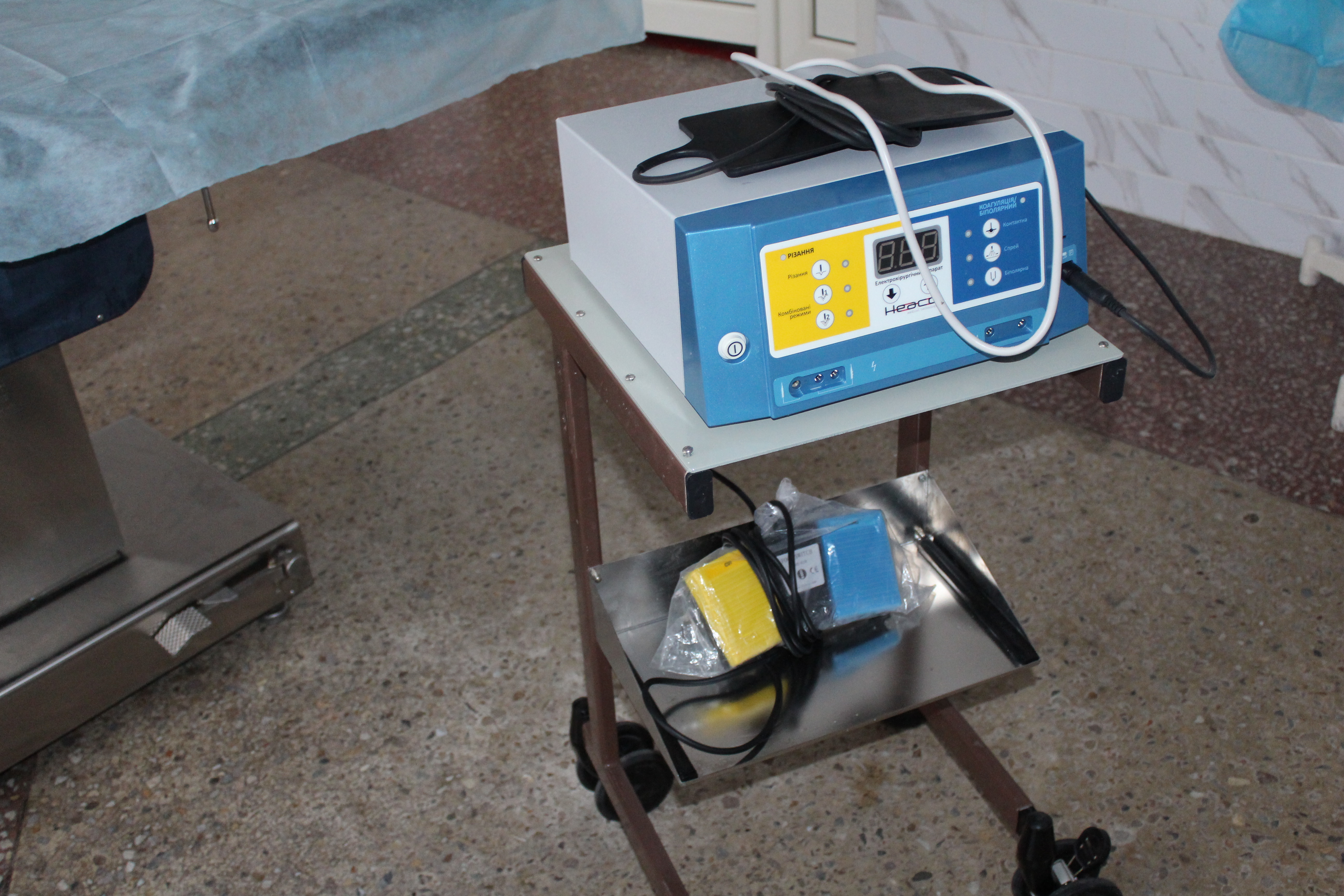 Кроме этого в хирургическое отделение была закуплена лапароскопическая стойка. Она представляет собой набор оборудования, в котором все устройства и приборы для абдоминальной хирургии объединены на единой тележке.