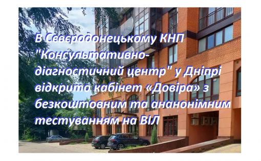 В Сєвєродонецькому КНП "Консультативно-діагностичний центр" у Дніпрі відкрито кабінет «Довіра» з безкоштовним та ананонімним тестуванням на ВІЛ
