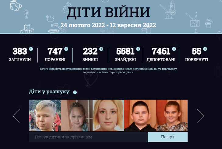 В Україні понад місяць діє державна інформаційна платформа Діти війни - повідомляють в ]]>Міністерстві з питань реінтеграції тимчасово окупованих територій України]]>. Чималих зусиль до якнайшвидшого повернення маленьких депортованих українців додому докладає Мінреінтеграції. Від початку повномасштабної війни за сприяння відомства вже повернуто 55 дітей, 31 з них – безпосередньо з росії.