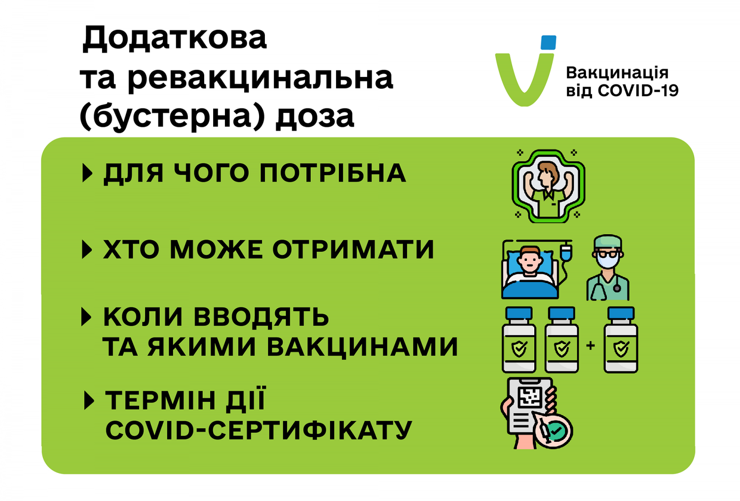 В Україні запровадили додаткову та бустерну дозу вакцин від COVID-19