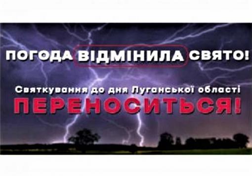 У зв`язку зі штормовим попередженням, оголошеним на 5 червня, урочисті заходи з нагоди 83-ї річниці від створення Луганської області перенесені до встановлення сприятливих погодних умов!
