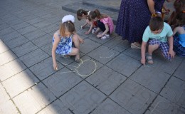 Виступ дитячих творчих колективів міського Палацу культури, конкурс малюнків на асфальті, веселі розваги: потяг, хороводи та незвичайна Звіробика - все це вмістило в себе тематичне свято для маленьких мешканців Сєвєродонецька!