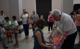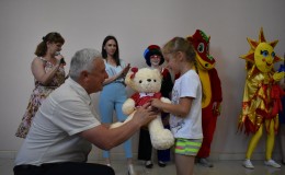 «Це чергове свято за останні кілька днів, присвячене Дню захисту дітей. Сьогодні я тут разом з депутатом міської ради, начальником служби у справах дітей Юлією Кочиною. Це її ідея. Ми хочемо, щоб всі діти, незалежно ні від чого, завжди були в центрі уваги, щоб вони були радісними і задоволеними. Щастя для всіх однаково. Від імені міської ради, депутатів, виконавчої влади, я вас всіх вітаю з цим святом!» - поздоровив Вячеслав Ткачук та відкрив таємницю, що кожна дитина не піде зі свята без подарунка.