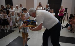 І одразу ж виконав обіцянку. Вячеслав Ткачук вручив кожному малюкові іграшку.